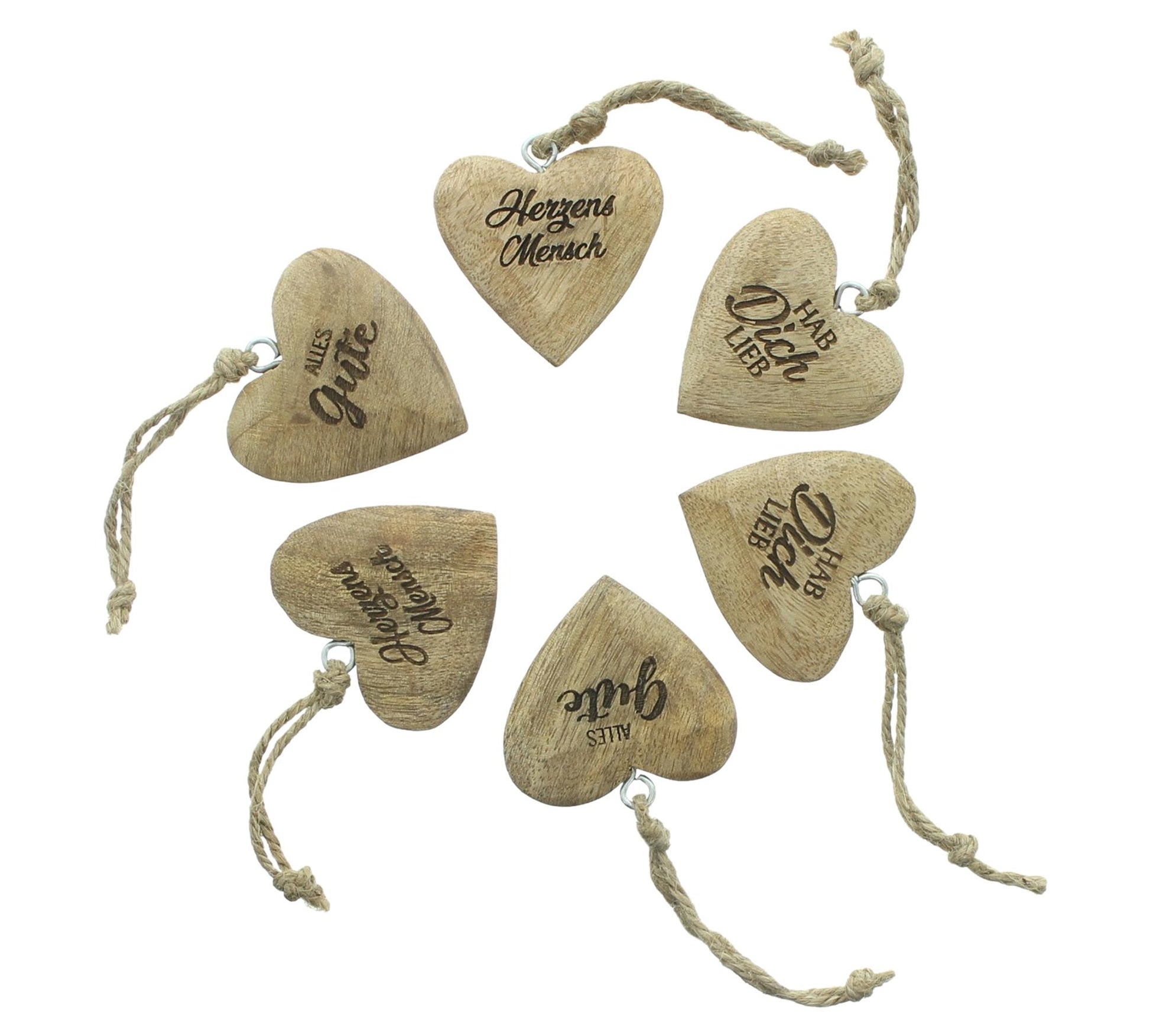 Dekoanhänger Herzchen - 6er Set - verschiedene Beschriftungen